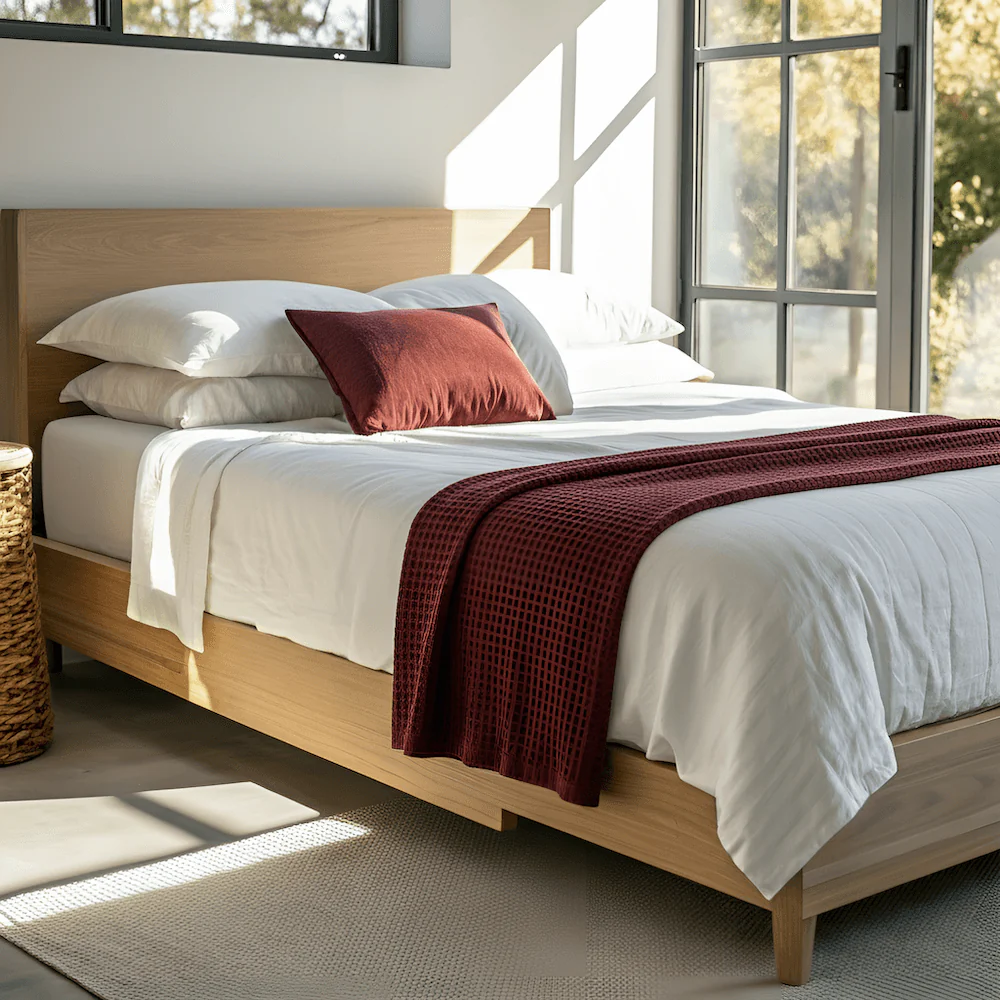 Luxury waffle-weave construction – a sculpted honey-comb texture that feels soft, substantial, and effortlessly elevated.